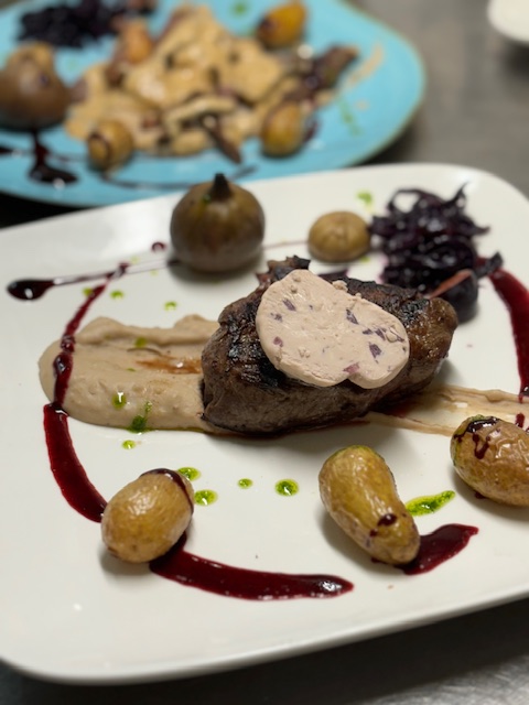 Menu. Menu enfant à CHF 13.- Pizza Margarita Boule de glace à choix Sirop Pizza Junior Boule de glace à choix Sirop Filet de poulet et frites maison Boule de glace à choix Sirop Salades Salade verteEt ses graines torréfiées CHF 7.- Salade MêléeSalade verte, crudités et graines torréfiées CHF 9.- Salade de chèvreBriques de chèvre, lard grillé, miel et noix CHF 16.- Espuma de carottes jaunesChips de jambon Serrano et huile de basilic CHF 11.- Brick de chèvreMiel, lard et noisettes torréfiées CHF 12.- Soupe de poissons "Ile de Ré"et ses garnitures CHF 15.- Huître de Marennes OléronFine de Claire n°3 ou spéciale, selon arrivage CHF 3.-/5.- pc À partager Rillettes de l'Ile de RéSaumon/ maquereaux aux oignons/ sardines/thon au poivre vers / servis avec pain toasté CHF 15.- Flamenkuch tradiLardons, crème et oignons CHF 16.- Flamenkuch végéFromage de brfebis et poivrons CHF 16.- Sardines à l'huile MillésiméesServies avec pain et beurre CHF 15.- Houmous du moment CHF 10.- Tartrares Servis avec frites maison TraditionnelBoeuf coupé au couteau, sauce maison CHF 36.- L'ItalienBoeuf coupé au couteau, pignon, tomates séchées, parmesan, huile d'olive au basilic et roquette CHF 38.- SaumonSaumon coupé au couteau, zeste de citron, sauce soja CHF 39.- Viandes Burger de l'AtelierBuns maison, haché du boucher, lard, raclette d'Ayent, pickles maison et sauce. Servi avec frites maison et salade CHF 31.- Filet mignon de porcSauce au poivre, écrasé de pommes de terre et légumes CHF 39.- Côte de boeufEnv 800gr à partager ou seul. Salade verte, frites maison et légumes. Sauce au poivre et jus de viande CHF 80.- Risottos Risotto de la merAux gambas et moules CHF 34.- Risotto de la terreAux champignons et boeuf snacké CHF 29.- Risotto végétarienAux légumes et champignons CHF 27.- Nos moules de bouchot Servies avec frites maison Moules MarinièresVin blanc, oignon et persil CHF 25.- Mouclade charentaiseCrème curry/pineau des Charente CHF 28.- Moules au bleuCrème au bleu du Valais CHF 28.- Nos desserts travaillés Nem banane-choco et crème de cacahuète CHF 12.- Pomme au four façon tatin et glace vanille CHF 12.- Gaufre Liégeoise, caramel beurre salé et glace vanille CHF 13.- Terrine glacée au chocolat, fruits secs et spéculos CHF 13.- Les Cocktails Aprérol SpritzApérol prosecco, eau gazeuse et tranche d'orange Limoncello SpritzLimoncello, prosecco, eau gazeuse et tranche de citron Gin GingerGin artisanal Breton, ginger beer, tranche de citron HugoSaint Germain, prosecco, eau gazeuse, zeste citron Lilet TonicLillet blanc, schweppes, rondelle de concombre